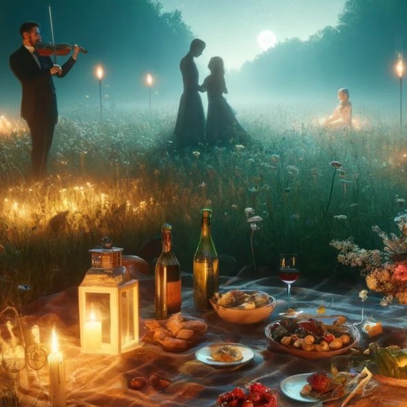 Embárcate en una aventura romántica y lujosa. Serás recogido por una elegante van sin ventanas, manteniendo el destino en misterio. Al llegar, las puertas se abren y te encuentras en un paraíso oculto con un picnic exquisito, decoraciones florales y la melodía de un músico en vivo.